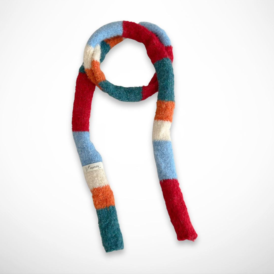 Dank seiner großzügigen Länge lässt es sich vielseitig binden: um den Hals gewickelt, locker getragen oder wie ein Schal. Sein farbenfrohes Streifenmuster peppt schlichte Outfits auf und passt sowohl zu lässigen als auch zu eleganteren Looks.