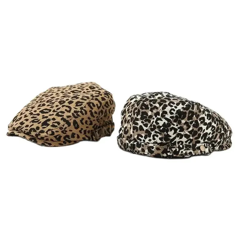 - Casquette plate unisexe avec imprimé léopard